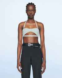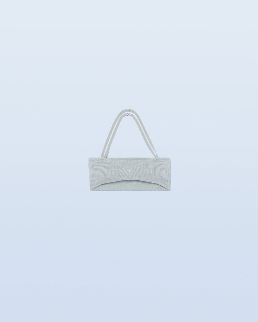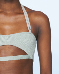 LE SPLASH Strappy knit bralette - Knit halter bra - Elasticated lingerie strap - Metal fasteners - Rib details The model is 177 cm and wears a size S 95% Linen - 4% Polyamide/Nylon - 1% Elastane Made in Portugal Ref.221KN056-2330-320