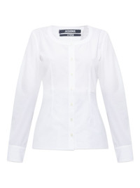 button-front long-sleeve blouse Highlights - White - Round neck - Long sleeves - Button front - Natural cotton Imported Composition Cotton 100% Washing instructions Read Manufacturer Guidelines