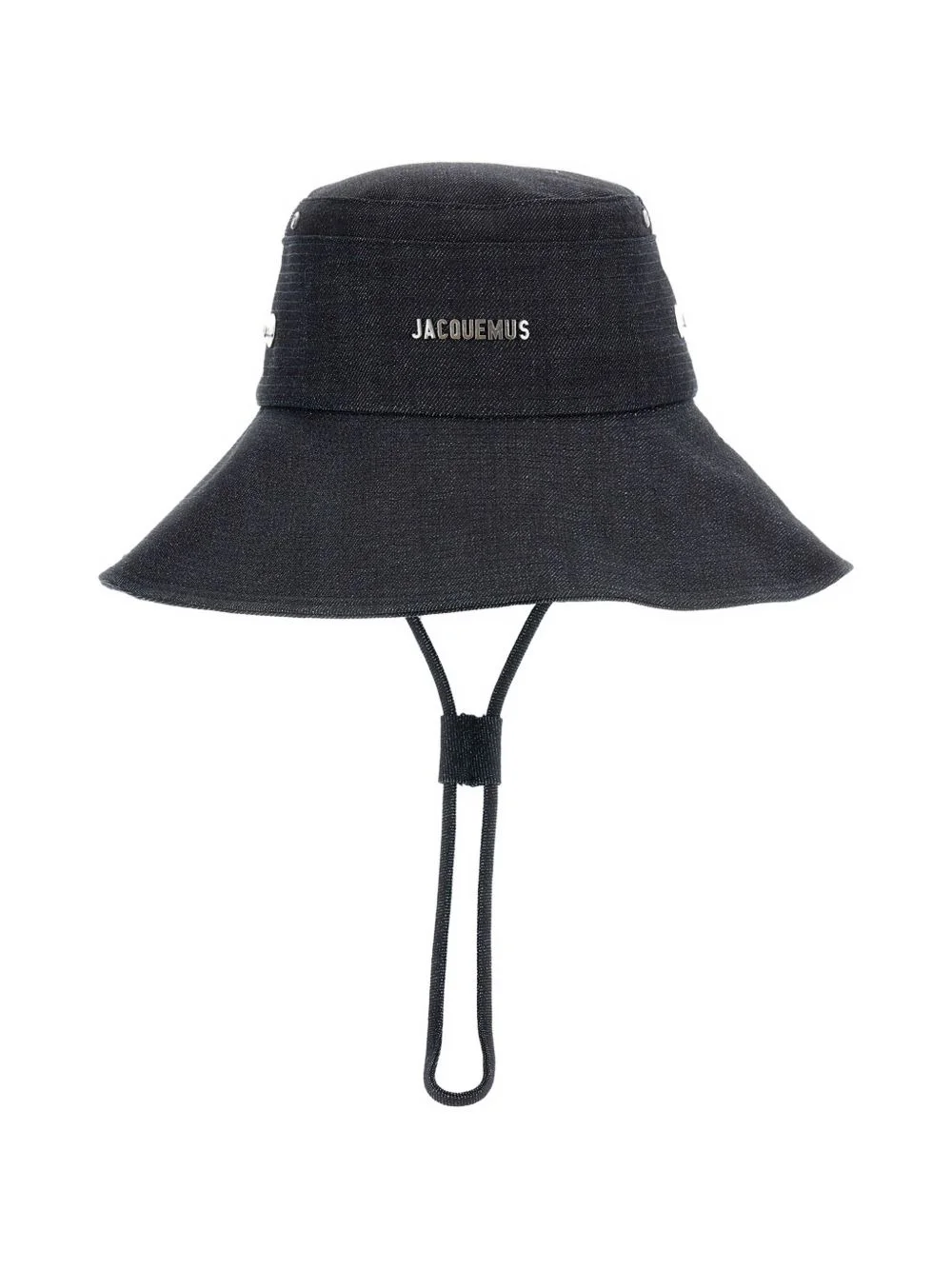 denim bucket hat Highlights - Black - Adjustable chin strap - Stitched visor - Side snap buttons - Circle square eyelets - Silver-tone logo Imported Composition Cotton 100%