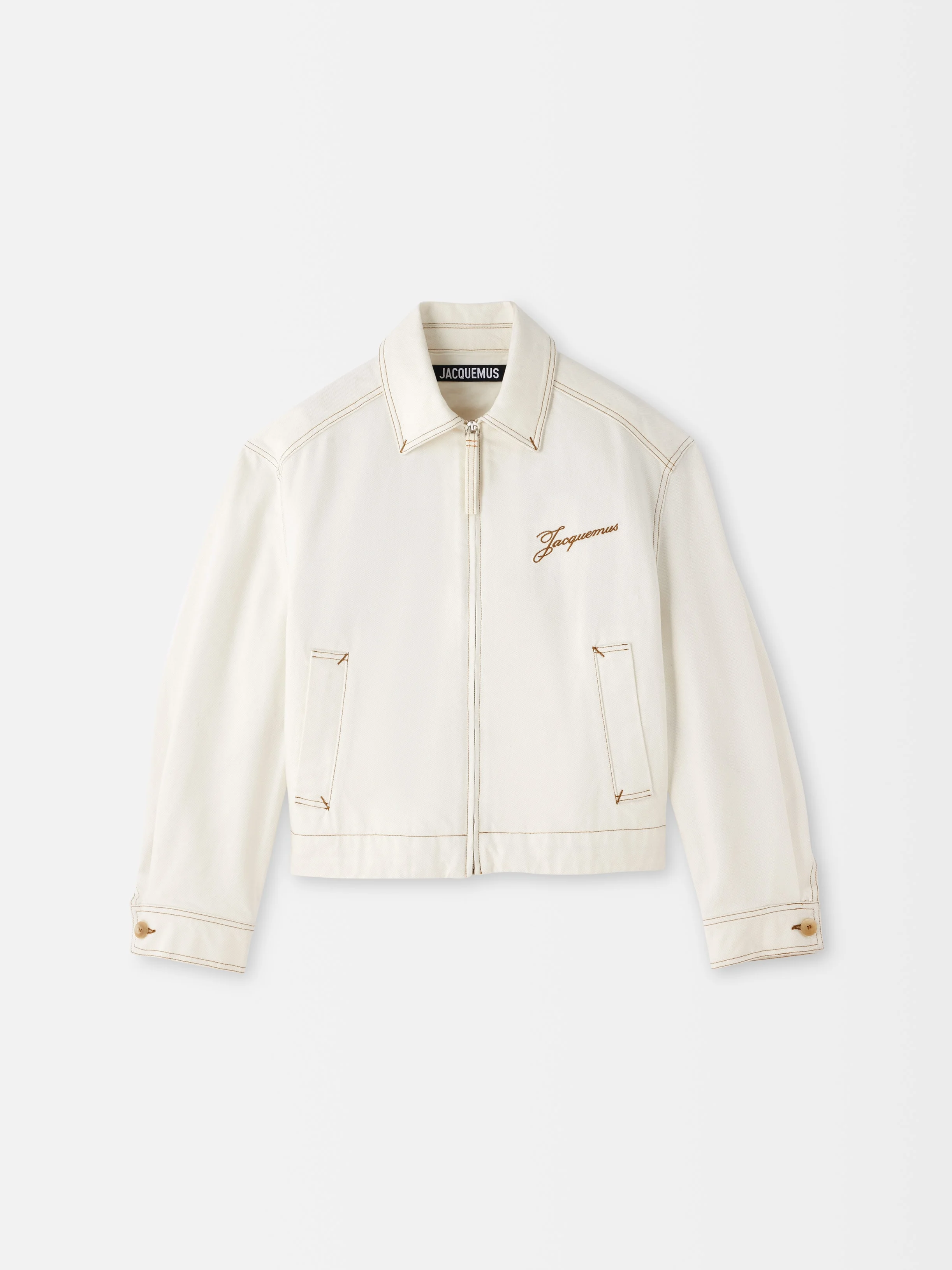 Zipped denim jacket - Boxy fit - Off-white denim - Pointed collar - Contrast bartacks - Zipped closure with long puller - Laser-printed logo on the chest - Long sleeves - Large welt pockets - Contrast horn buttoned cuffs - Embroidered patch on the back - Back yoke The model is 177cm and wears a size 34 Made in Italy Ref. OUW00100AD0004011C