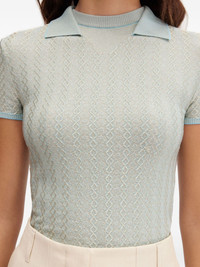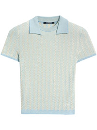 embroidered polo top Highlights - Cambridge blue - Ribbed cuffs - Split neck - Short sleeves Imported Composition Viscose 93%, Polyester 4%, Elastane 3% SIZE & FIT FittingInformation Designed for a slim fit that sits just away from the body offering a close yet comfortable fit Made with a midweight knit, this piece offers some stretch Washing instructions Read Manufacturer Guidelines