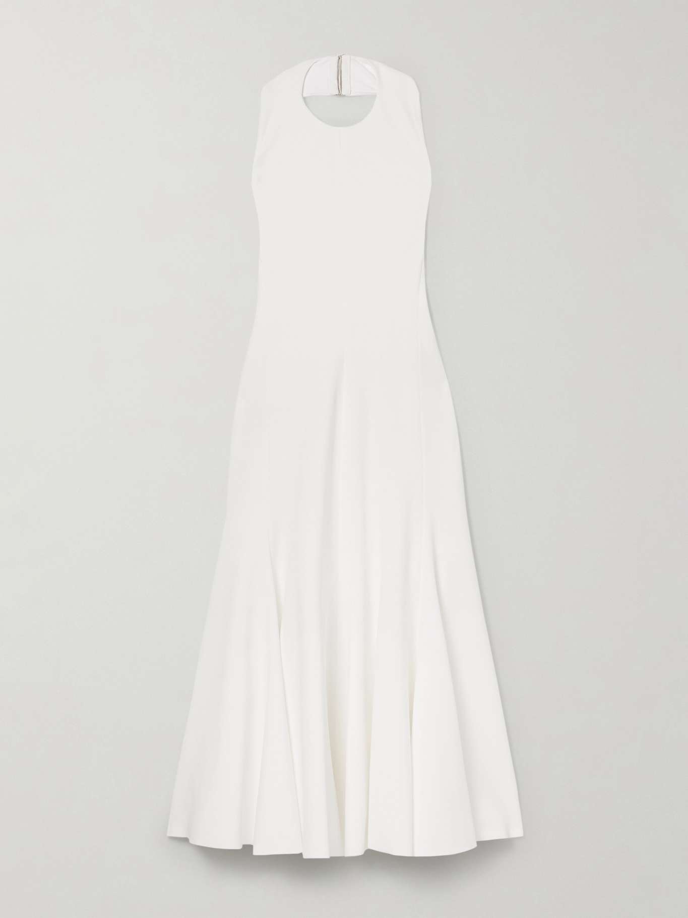 EDITORS'NOTES Designed with a high neckline and low, open back, Jacquemus' 'Favola' dress is understated yet striking. It's made from subtly textured crepe-jersey and falls to a flowy midi skirt. SIZE & FIT Model measurements: - Fits true to size, take your normal size - Cut to be slightly fitted at the bust and waist, loose at the hip - Lightweight, non-stretchy fabric - Model is 175cm/ 5'9" and is wearing a FR 36 - Bust: 81cm/ 32" - Waist: 65cm/ 26" - Hip: 90cm/ 35" DETAILS & CARE - -White crepe-jersey - Clasp fastening at neck, concealed hook and zip fastening at back - 78% viscose, 16% polyamide, 6% elastane; lining: 78% polyamide, 22% elastane - Dry clean