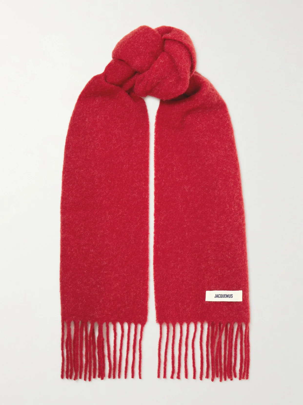 Jacquemus' scarf will be your go-to for winter walks and festive markets. It's been knitted in Italy for an ultra-soft, brushed handle in a festive cranberry-red hue. The cozy style is appliqued with the house's logo and finished with swishy fringing.