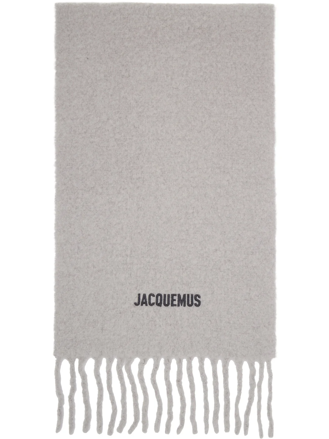 Rectangular brushed knit alpaca-blend scarf. · Hand-dyed gradient throughout · Logo embroidered at face · Fringed detailing at ends · L96.5" x W15" Supplier color: Multi-grey 80% alpaca, 20% polyamide. Made in Italy 252553F028021