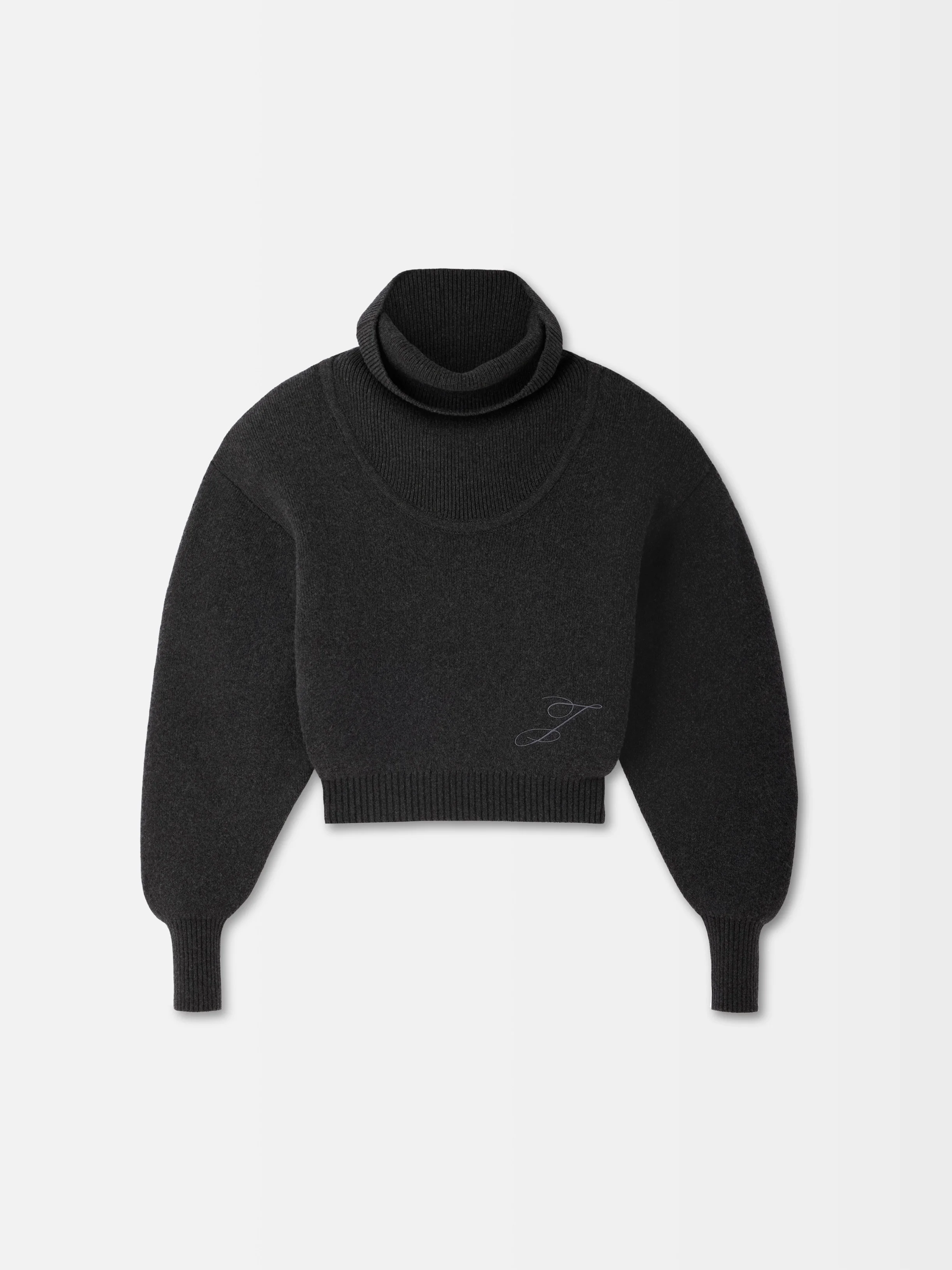 Wide turtleneck sweater - Relaxed fit - Heavy virgin wool and cashmere knit - Wide turtleneck - Ribbed collar, cuffs and hem - Bib panel - Rounded sleeves - Embroidered “J” on the waist The model is 178cm and wears a size 38 90% Virgin Wool - 10% Cashmere Made in Italy Ref. SWW00624AK00278970