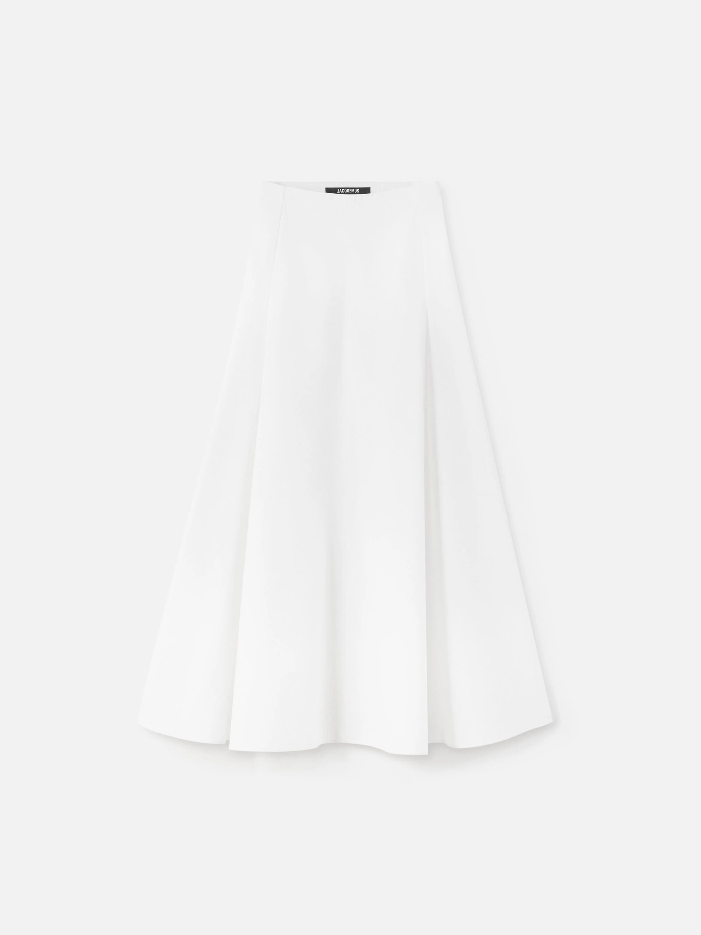 Flared maxi skirt - High-rise - Crisp cotton poplin - Embroidered “J” on the front - Godets - Invisible zipper on the back - Ankle-length flared hem - Invisible stitching on the hem The model is 177cm and wears a size 34 100% Cotton / Lining: 55% Cotton - 45% Polyester Made in Romania Ref. SKW00635AW00648100