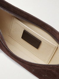 The curved shape of Jacquemus' 'The Bisou Perle' bag is timelessly elegant. Crafted from leather and croc-effect suede, it's embellished with wooden spheres at each end of the sleek shoulder strap. The silver-tone hardware is polished for subtle shine. Details & Care - Brown croc-effect suede and leather (Calf) - Adjustable shoulder strap - Internal slip pocket - Canvas lining - Zip fastening along top - Comes with a dust bag - Weighs approximately 1.1lbs/ 0.5kg
