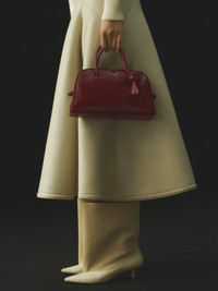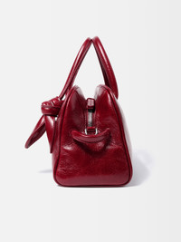 Small soft bowling bag - Bowling bag in shiny vintage-finished leather - Double-sided zipper - Tubular handles in matching leather - Knotted detail on handle - Removable cross-body strap - Embossed logo - Interior pocket - 10,2 in x 6,3 in x 4,3 in Each leather is unique and has been carefully selected by our team. To maintain the original condition of this item, we recommend to avoid direct and over-exposure to light and contact with cosmetics, water or heat. We advise to store this item into the dust bag in a dry place. 100% Cow Leather / Lining: 100% Cotton Made in Italy Ref. BAW00416AC20C01490