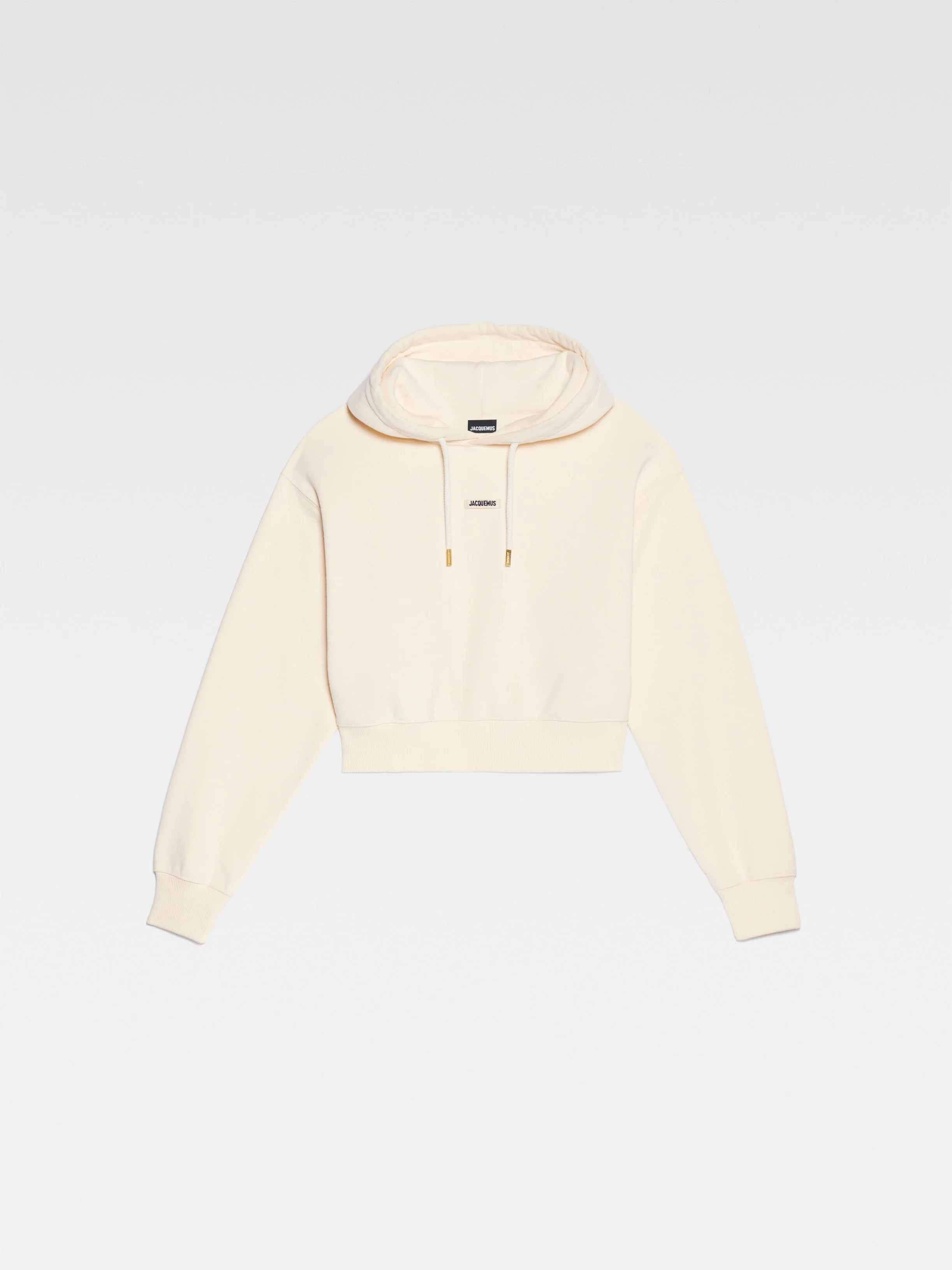 Grosgrain logo hoodie - Classic cropped fit - Cotton fleece - Drawstring hood with circle and square tips - Embroidered grosgrain logo on chest - Ribbed cuffs and hems The model is 178 cm and wears a size XS 100% Cotton Made in Portugal Ref. HOW00247AJ00109130