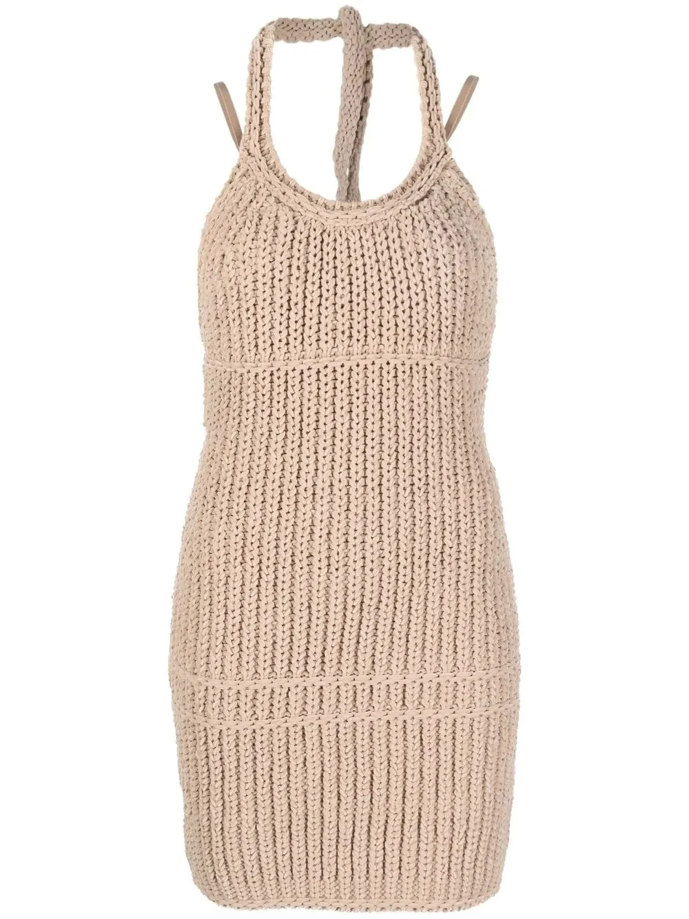 knitted halterneck dress Jacquemus' innovative yet minimalist design style is reflected in this dress, which features a knitted construction and tonal colourway to create a contemporary yet timeless design. Imported Composition Polyamide 100% SIZE & FIT Model measurements Height 5 ft 10 in(1.79 m) Bust/Chest 31.1 in(79 cm) Hips 35.03 in(89 cm) Waist 24.01 in(61 cm) FittingInformation This piece fits true to size. We recommend you get your regular size Cut for a slim fit Made with a mid-weight fabric Washing instructions Hand Wash