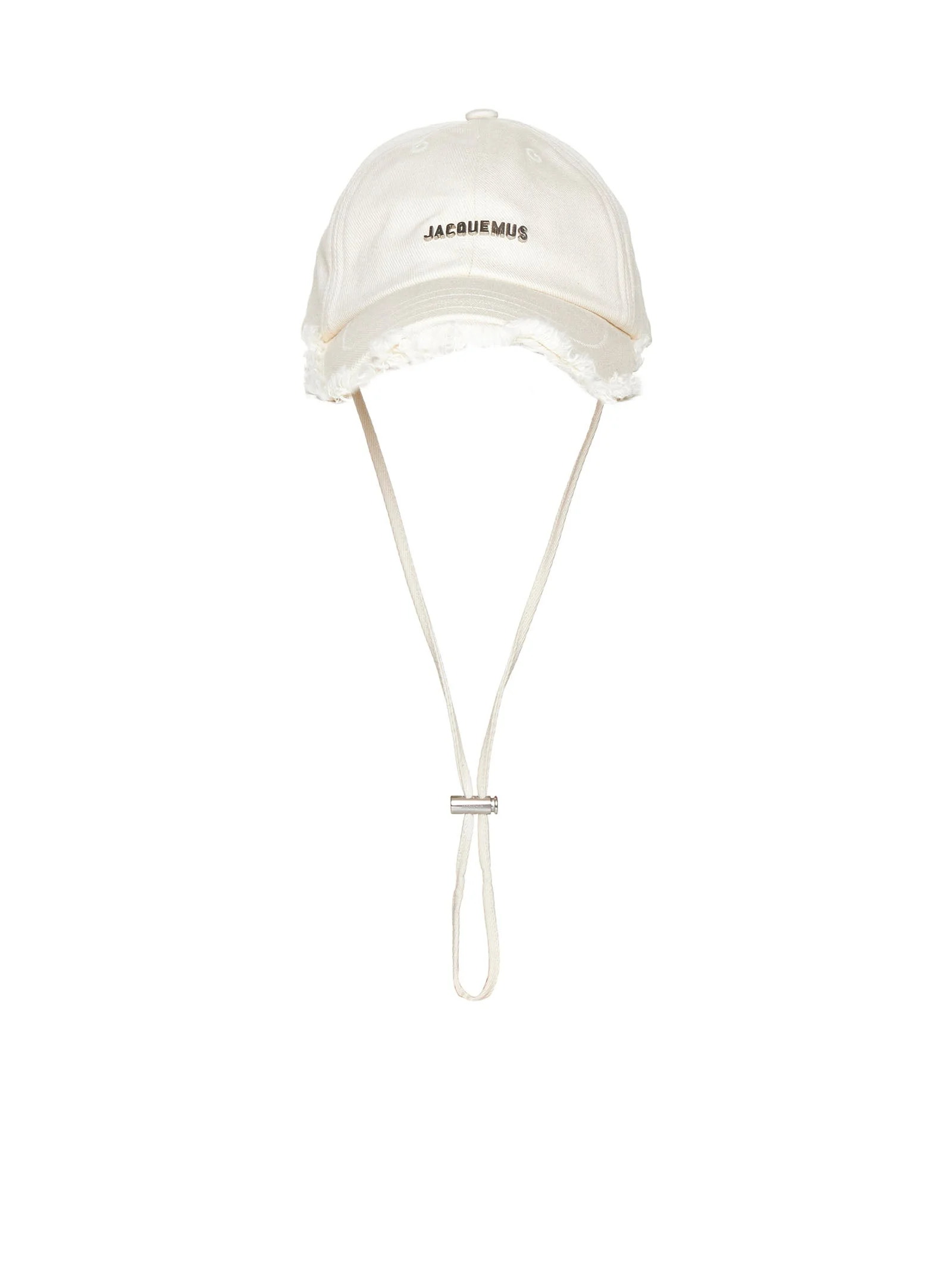 - Fringed baseball cap - “la casquette artichaut” model by jacquemus - 100% cotton - Off-white color - Silver-tone metal logo - Stitched brim with frayed edges - Adjustable back strap with metal buckle Natural (Veg): Cotton100 % Made in: Bulgaria Season: P26 ACU00452AW00092-110