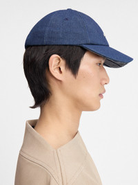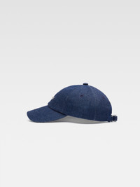 LA CASA Logo cap - Raw indigo denim hat - Silver metal logo - Top-stitched visor - Striped cotton visor lining - Round square back buckle 100% Cotton Made in Bulgaria Ref. 246AC670-1513-38F