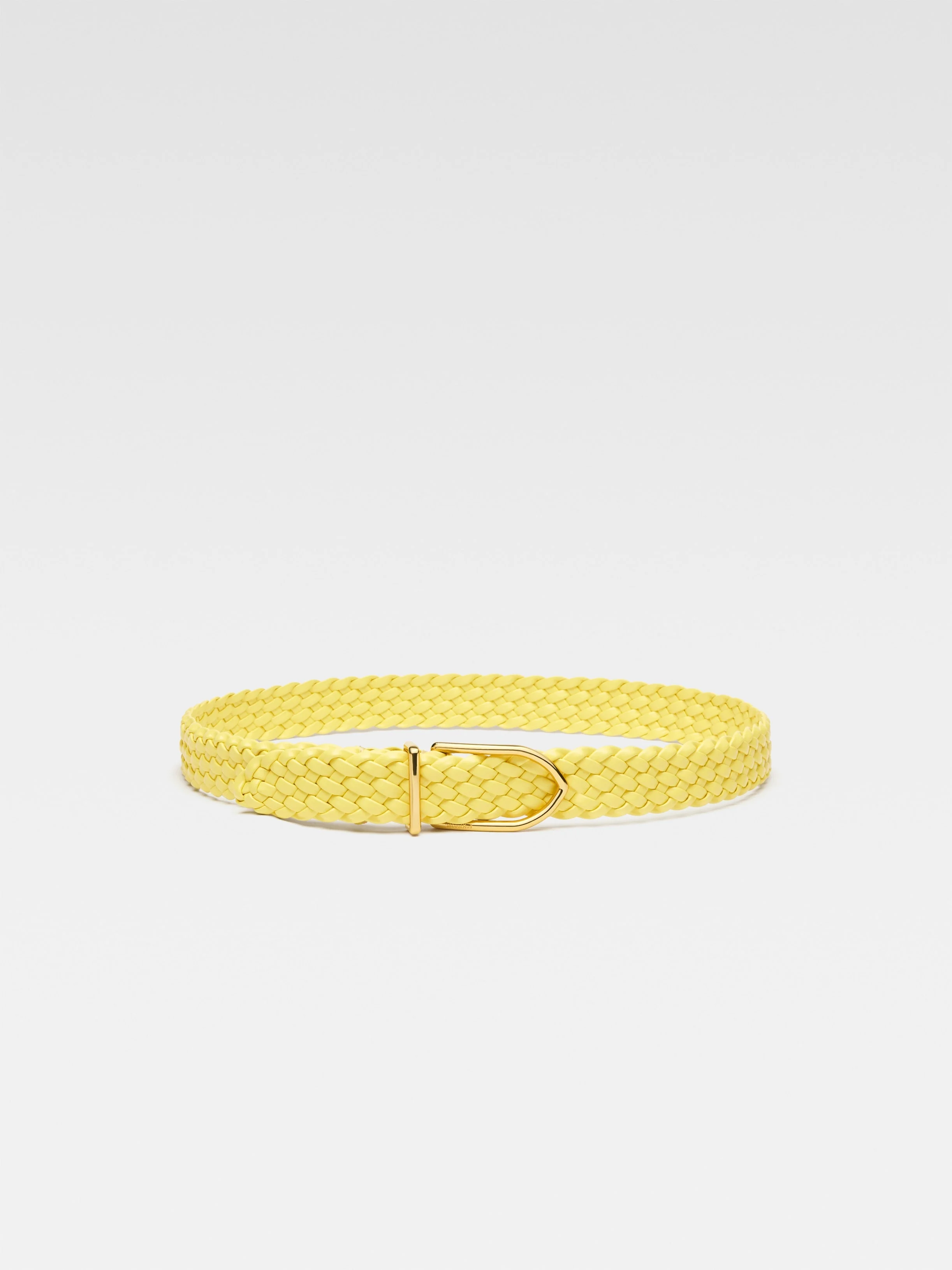 LA CASA Braided signature-buckle belt - Braided smooth leather belt - Metal buckle inspired by the Bambino - Press-stud closure - Perforations and topstitching - Engraved and embossed logos - Five adjustable lengths - Gold-plated hardware - Width: 3cm 100% Cow leather Made in Italy Ref.241AC336-3173-250