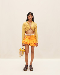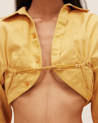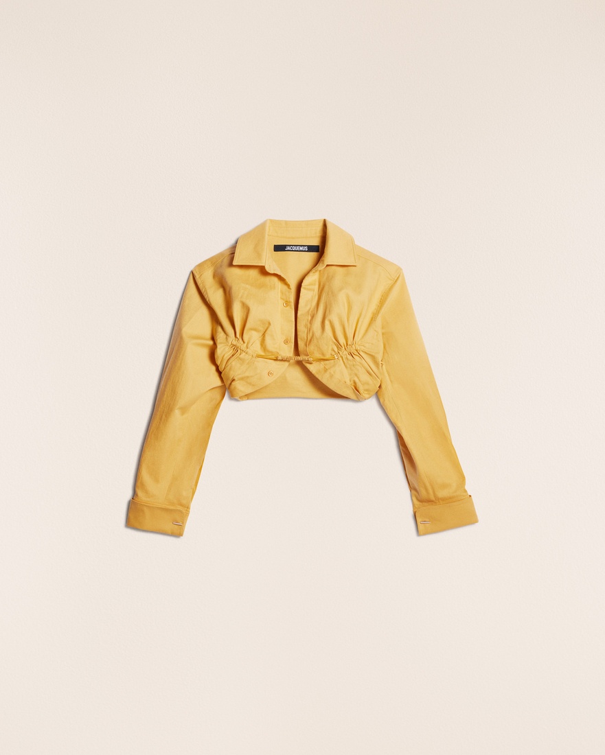 Le Raphia Bolero shirt - Cropped fit - Cotton and linen canvas - Elasticated band in the front with gathered details - Mother-of-pearl buttons - Long cuff-linked cuffs - Engraved metal cufflinks - Gathered back 57% Cotton - 43% Linen Made in Portugal Ref.223SH014-1064-250
