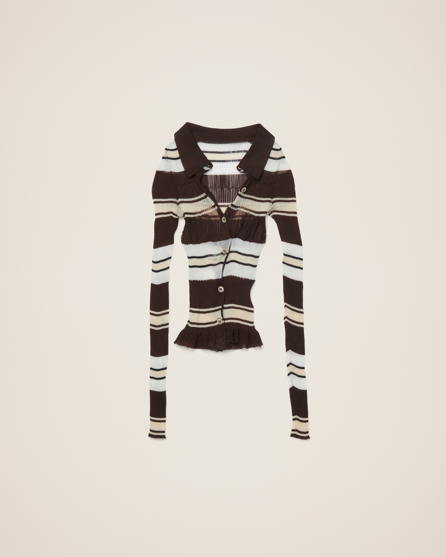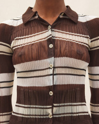 LE PAPIER Transparent shirt - Fitted shape - Transparent pleated knit - Pointed collar and knit placket - Mother-of-pearl buttons - Contrast pleated band 70% Recycled Polyamide/Nylon - 30% Polyamide/Nylon Made in Italy Ref.223KN064-2143-080