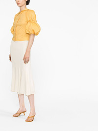La Chemise Maraca shirt This La Chemise Maraca shirt from Jacquemus speaks to the label’s unconventional approach. Imagined in a lemon-yellow hue, it’s elevated with exaggerated puff sleeves and a circular back cut-out. In contrast, the poplin composition, point collar and button-up front make for more traditional design details. Imported Composition Cotton 98%, Elastane 2% SIZE & FIT Model measurements Height 5 ft 10 in(1.78 m) Bust/Chest 30.7 in(78 cm) Hips 34.64 in(88 cm) Waist 23.22 in(59 cm) FittingInformation This piece fits true to size. We recommend you get your regular size Cut for a slim fit Made with a mid-weight stretch fabric Measurement BUST 30 in(76.2 cm) LENGTH 20 in(50.8 cm) WAIST 27.99 in(71.1 cm) SLEEVE LENGTH 10.62 in(27 cm) Washing instructions Hand Wash