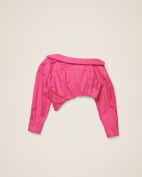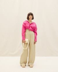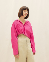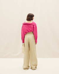 LE PAPIER Twist tucked blouse - Cropped, loose fit - Cotton and linen canvas - Open collar - Patch pocket on the chest - Twisted buttoning - Asymmetric drape on the front - Square cuffs with mother-of-pearl buttons 55% Cotton - 45% Linen Made in Bulgaria Ref.213SH101-1064-430