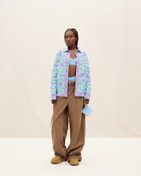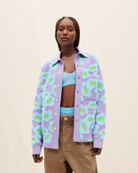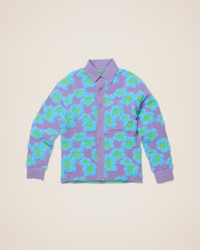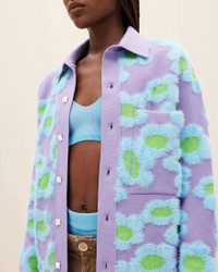LE PAPIER Fluffy overshirt - Regular fit - Retro flower knit - Chest patch pocket - Classic button tab - Engraved metal buttons - Contrast ribbed collar, placket and cuffs 64% Viscose - 35% Polyamide/Nylon - 1% Elastane Made in Portugal Ref.226KN121-2115-6AN