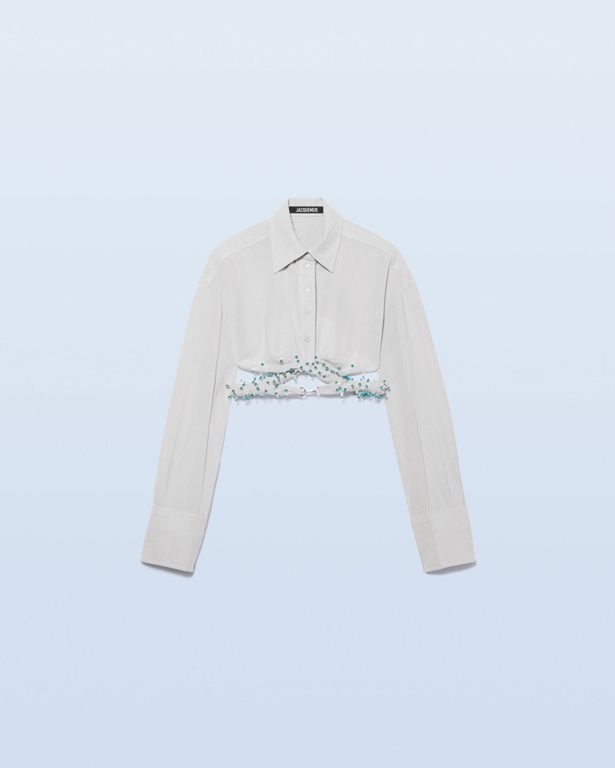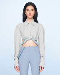 LE SPLASH Beaded belt cropped shirt - Cropped, fitted shape - Pointed collar - Wadded, twisted belt with sewn beads - Mother-of-pearl buttons - Engraved lobster clip This item is made of FSC® -certified fabric. FSC® certification guarantees that materials sourced from forests were managed with consideration for people, wildlife, and the environment. The model is 175 cm and wears a size 34 100% Viscose Made in Madagascar Ref.221SH021-1004-910