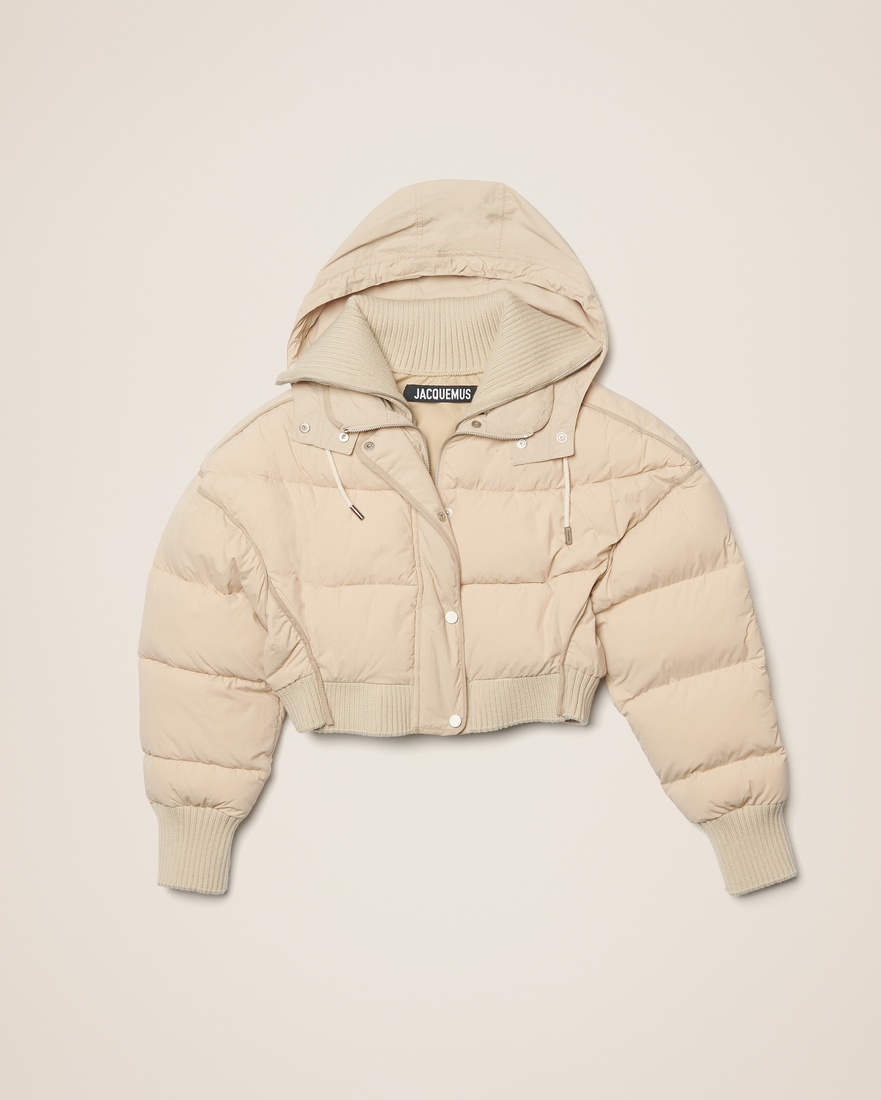 LE PAPIER Cropped puffed jacket - Cropped fit - Water-repellent - Double collar with a ribbed high neck - Elasticated drawstring hood - Hidden zip closure with snap button tab - Rubbed cuffs and hem - Embroidered logo on the sleeve The model is 178 cm and wears a size 34. 100% Polyamide/Nylon Made in Italy Ref.223CO011-1032-130