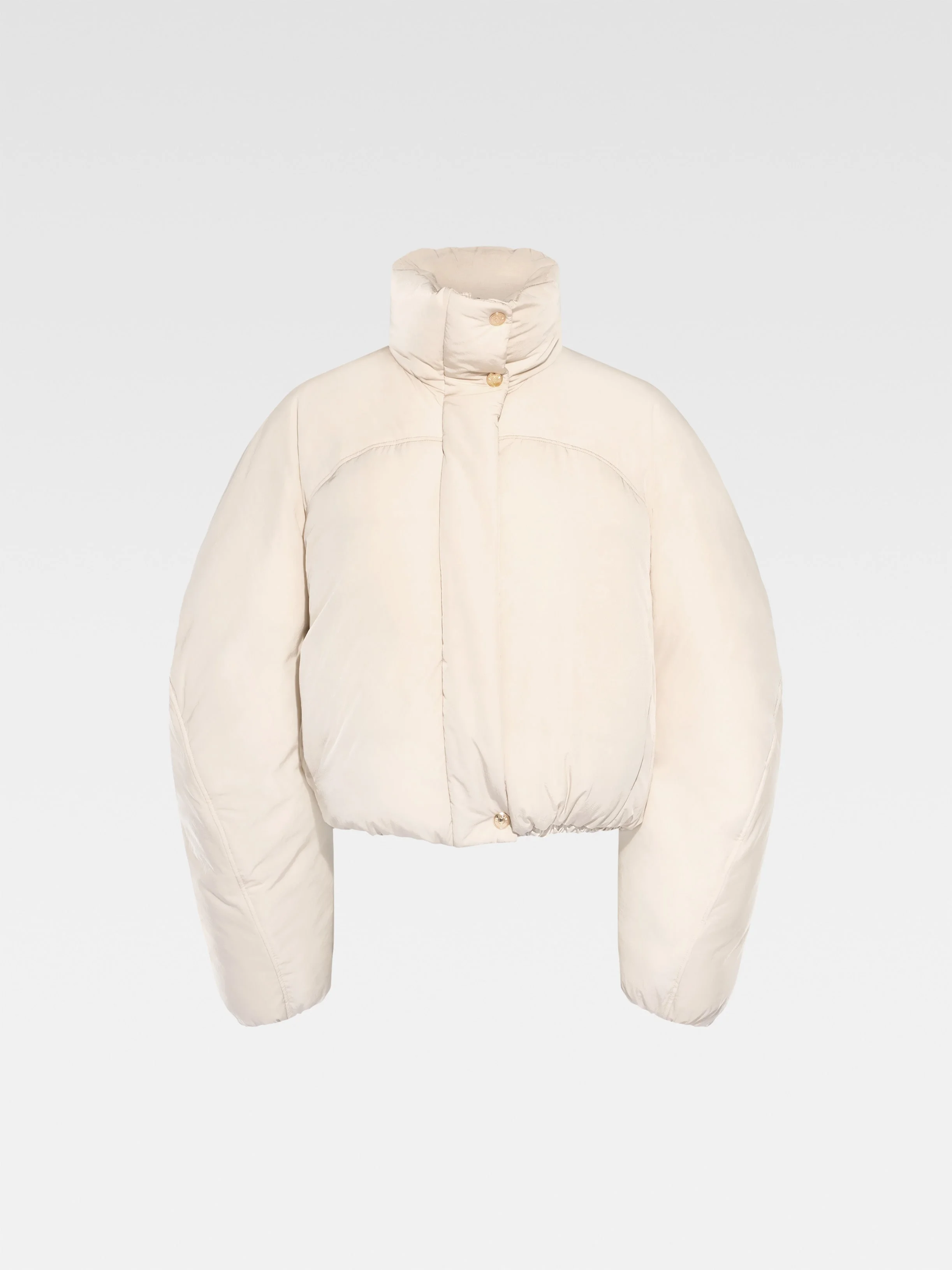 Les Classiques Cropped puffer - Cropped, round fit - Nylon with a wadded interior - Puffy stand collar - Rounded shoulders with chest yoke - Zip closure with snap button placket - Elasticated cuffs - Side-seam pockets - Elasticated drawstring hem - Fully lined - “J” loop detail on the curved back yoke The model is 178 cm and wears a size 34 100% Polyamide - 100% Cotton - 100% Polyester / Lining: 100% Polyamide Made in Tunisia Ref. 241CO049-1320-110