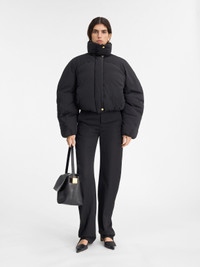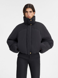 Les Classiques Cropped puffer - Cropped, round fit - Nylon with a wadded interior - Puffy stand collar - Rounded shoulders with chest yoke - Zip closure with snap button placket - Elasticated cuffs - Side-seam pockets - Elasticated drawstring hem - Fully lined - “J” loop detail on the curved back yoke The model is 178 cm and wears a size 34 100% Polyamide - 100% Cotton - 100% Polyester / Lining: 100% Polyamide Made in Tunisia Ref. 241CO049-1320-990