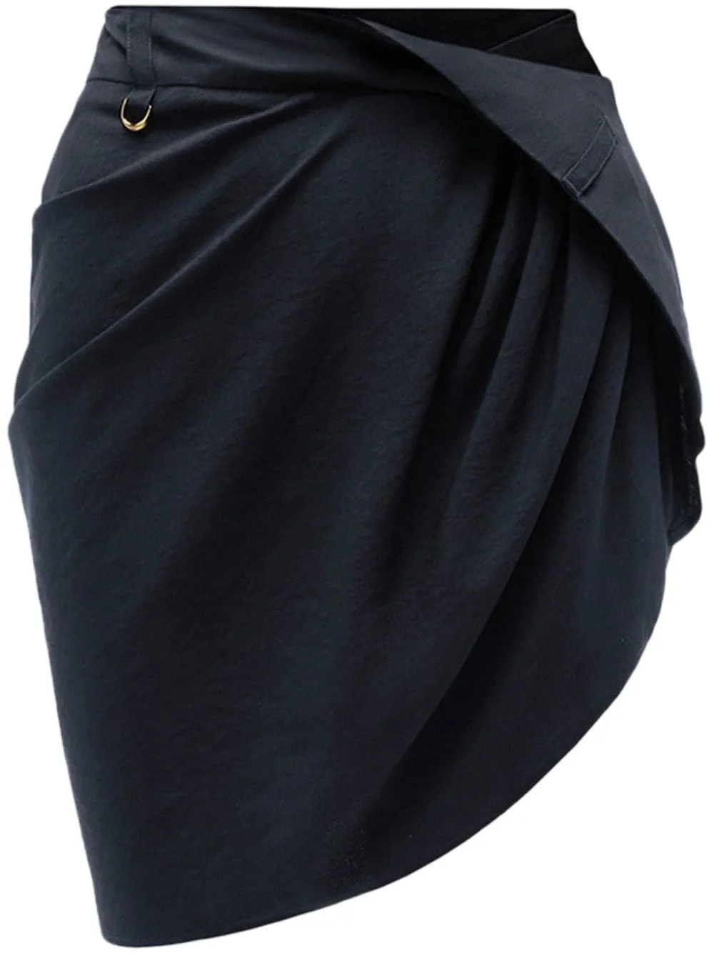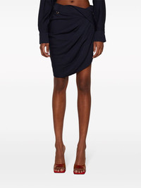 La Mini Jupe Saudade draped skirt Highlights - Navy blue - Asymmetric design - Draped design - D-ring findings - Asymmetric hem - Thigh-length Imported Composition Fabric 100% Washing instructions Read Manufacturer Guidelines