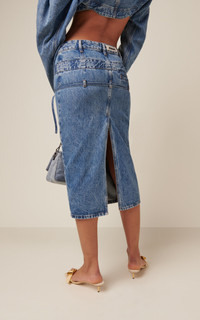 Presented at the Palace of Versailles (the location of his first date with his now husband), Simon Porte Jacquemus' Fall '23 collection, titled "Le Chouchou" (or hair scrunchie), offered a playful interpretation of royal dressing. The show included references to one of the Palace's most well-known residents, Marie Antoinette, and her love for theatrics and the ballet, alongside nods to Princess Diana with ’80s-inspired puffy and ruched silhouettes that have become a brand signature. The 'De Nimes Criollo' denim skirt has a straight cut with a buckled tie that wraps around the hip — a brand signature. Complete the look with the matching top. PRODUCT DETAILS - From the Fall '23 collection - Concealed zip fastening - Composition: 100% organic cotton - Dry clean - Made in France SIZE & FIT - Our model is 176cm/ 5'9.5" and wearing a size 26 - Fits true to size, our fit specialist recommends taking your normal size - Designed for a slim fit