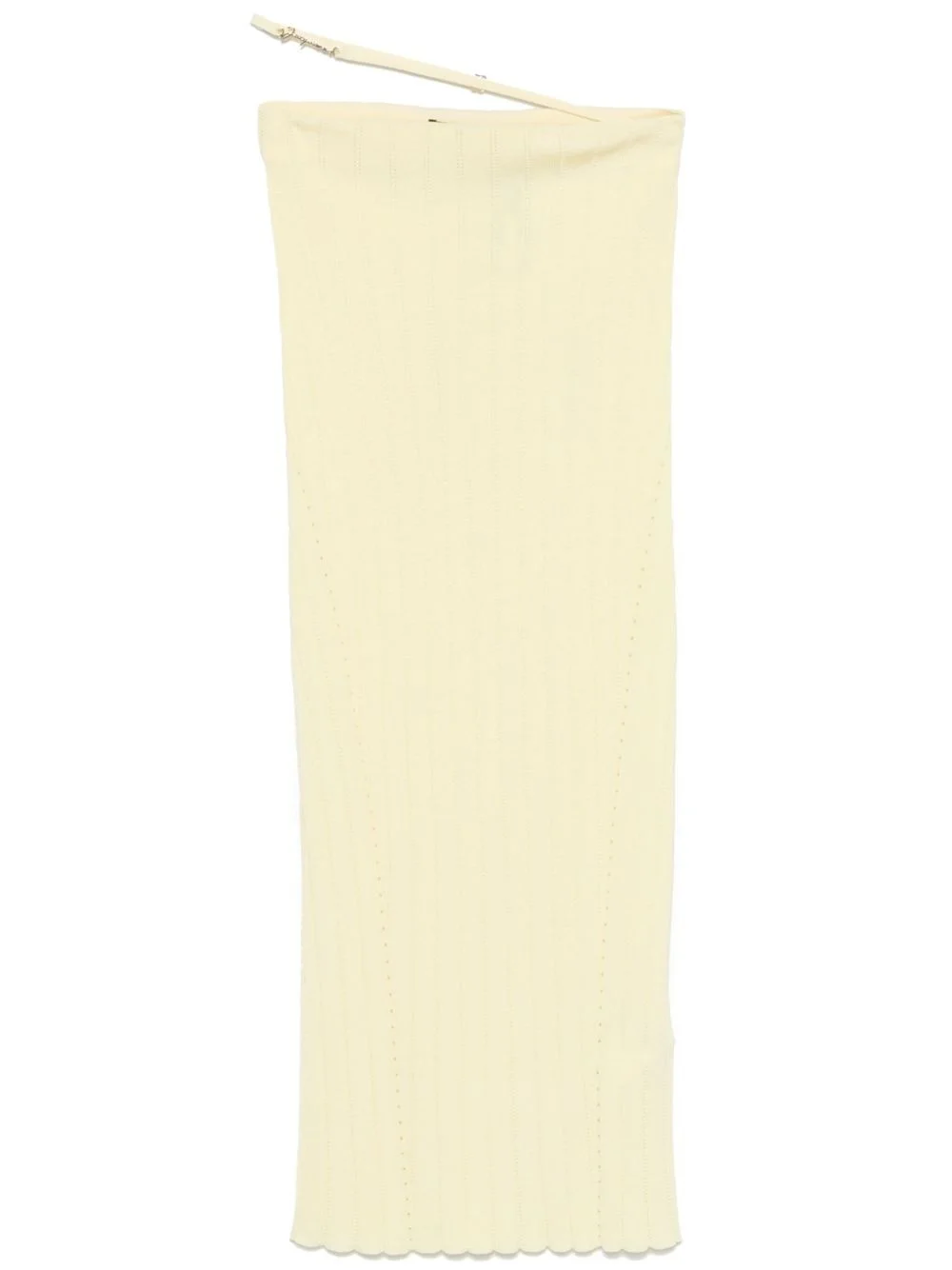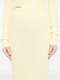 La jupe Pralu midi skirt Highlights - Lemon yellow - Elasticated waistband - Adjustable waist strap - Logo plaque - Scallop hem Imported Composition Viscose 76%, Polyamide 24% SIZE & FIT Model measurements Height 5 ft 9 in(1.75 m) Bust/Chest 34.64 in(88 cm) Hips 36.61 in(93 cm) Waist 26.37 in(67 cm) FittingInformation This midi-length skirt is intended to be worn high on the waist Made with a lightweight knit, this piece offers some stretch