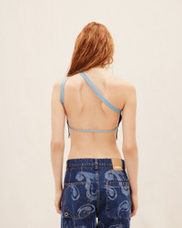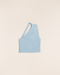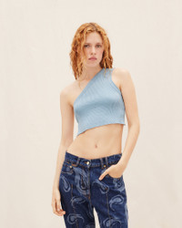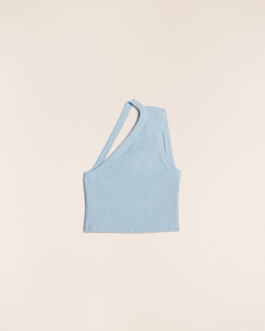 Le Raphia Asymmetric crop top - Short, fitted and asymmetrical shape - Rib knit - Single shoulder strap - Halter top with adjustable straps 86% Linen - 13% Polyamide/Nylon - 1% Elastane Made in Portugal Ref.213KN009-2330-325