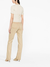 La maille Bikini cropped top Proof of Jacquemus's bold aesthetic, the Bikini cropped top gets its name from the resemblance to the two-piece swimsuit. While an embroidered design mimics triangle cups, tie-fastening straps adorn the neckline in a halterneck style. Imported Composition Cotton 97%, Polyamide 3% SIZE & FIT Model measurements Height 5 ft 11 in(1.8 m) Bust/Chest 31.49 in(80 cm) Hips 35.43 in(90 cm) Waist 25.19 in(64 cm) Washing instructions Dry Clean Only