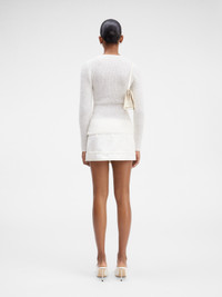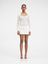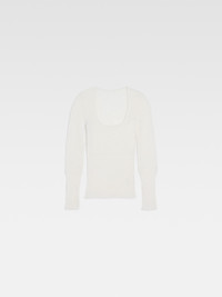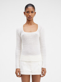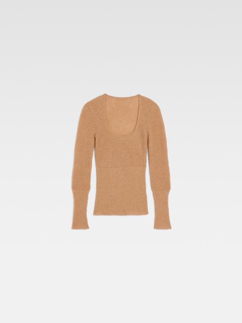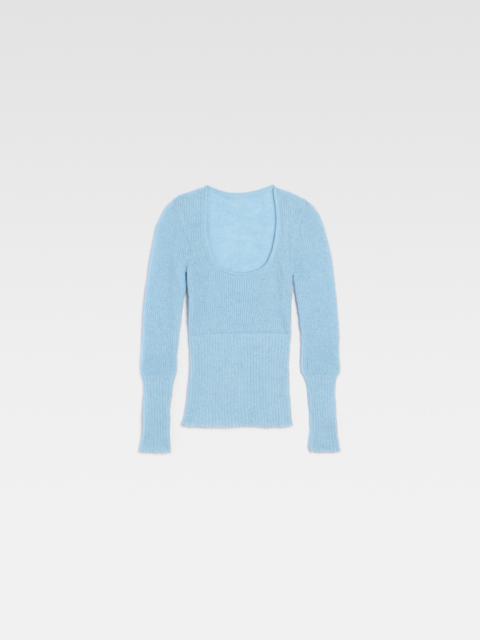 LE CHOUCHOU Scoop neck sweater - Fitted shape with long sleeves - Ribbed mohair knit - Plunging scoop neckline - Ribbed cuffs and hem The model is 181 cm and wears a size 34. 34% Mohair - 34% Alpaca wool - 32% Polyamide Made in Portugal Ref.233KN348-2351-110