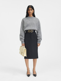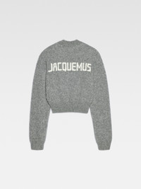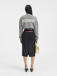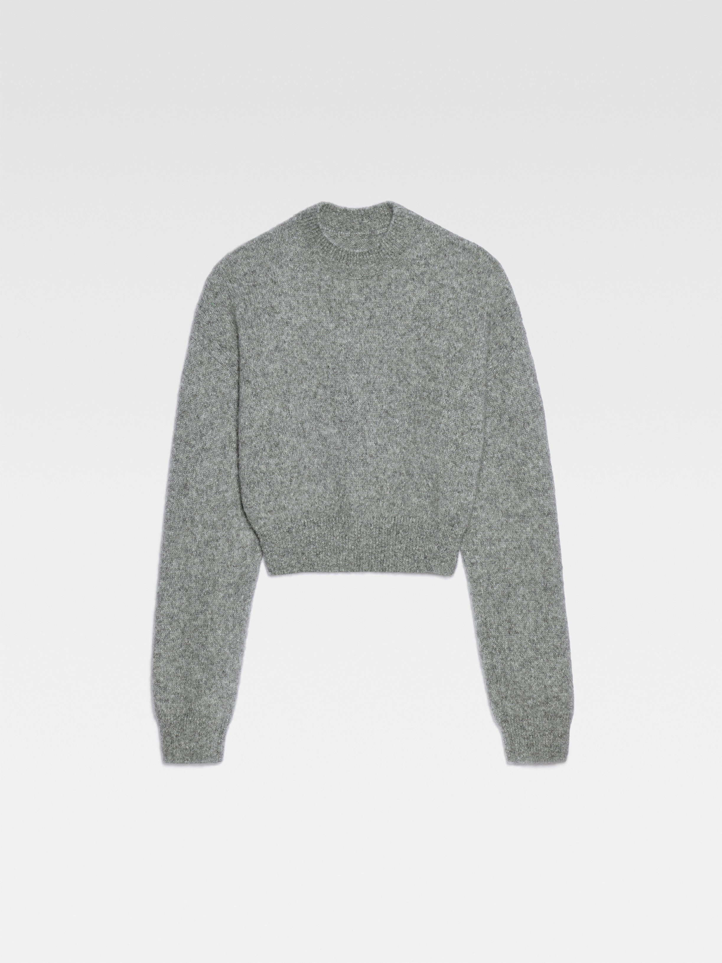 Les Classiques Logo sweater - Cropped fit - Brushed alpaca knit - Crew neck - Ribbed collar, cuffs and hem - Contrast jacquard logo on the back The model is 171 cm and wears a size XS 68% Alpaca wool - 22% Polyamide - 10% Merino wool Made in Portugal Ref. 241KN353-2329-950
