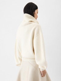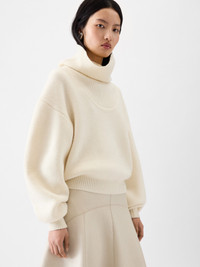 Wide turtleneck sweater - Relaxed fit - Heavy virgin wool and cashmere knit - Wide turtleneck - Ribbed collar, cuffs and hem - Bib panel - Rounded sleeves - Embroidered “J” on the waist The model is 177cm and wears a size 38 90% Virgin Wool - 10% Cashmere Made in Italy Ref. SWW00624AK00278110