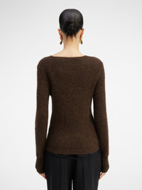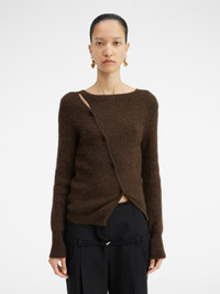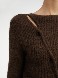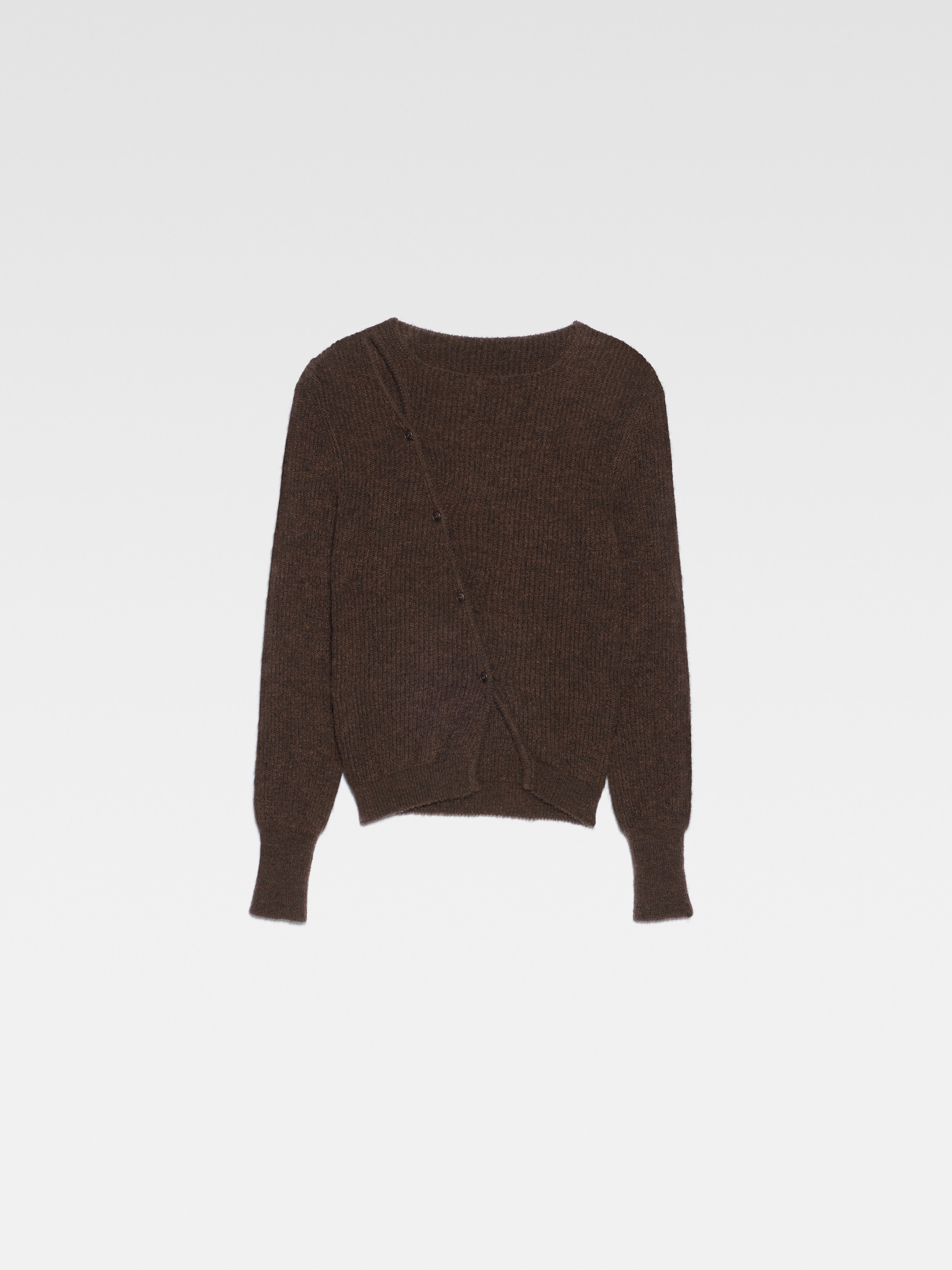 LE CHOUCHOU Asymmetric cardigan - Fitted shape - Alpaca wool - Round neckline - Asymmetric buttoned closure The model is 179 cm and wears a size 34. 33% Polyamide/Nylon - 33% Acrylic - 28% Alpaca Wool - 6% Wool Made in Italy Ref.202KN002-2085-881