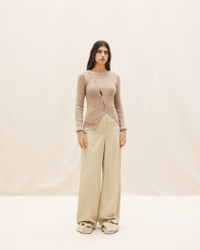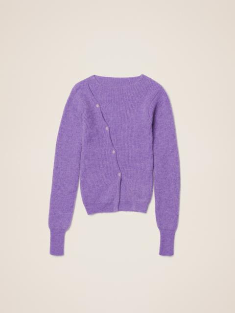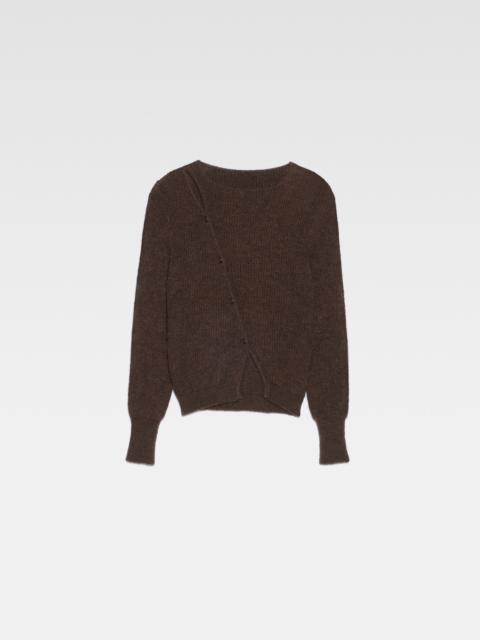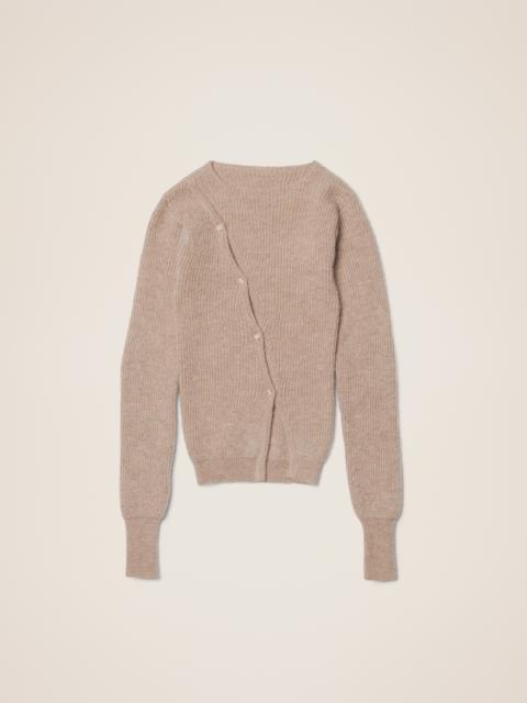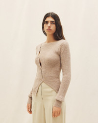 LE PAPIER Asymmetric cardigan - Fitted shape - Alpaca wool - Round neckline - Asymmetric buttoned closure 33% Polyamide/Nylon - 33% Acrylic - 28% Alpaca Wool - 6% Wool Made in Italy Ref.202KN002-2085-130