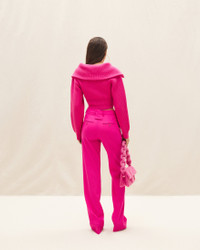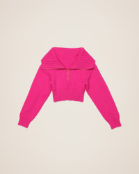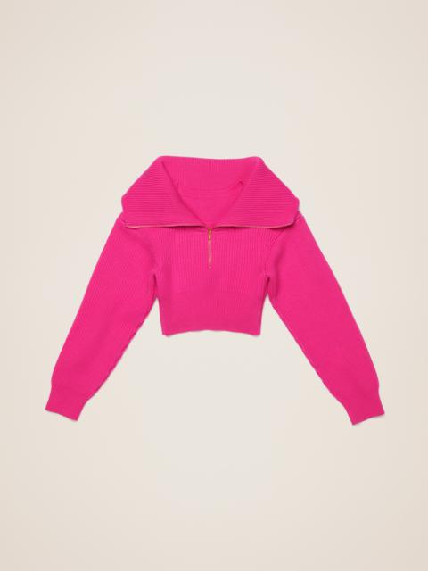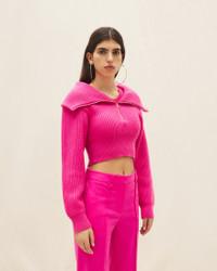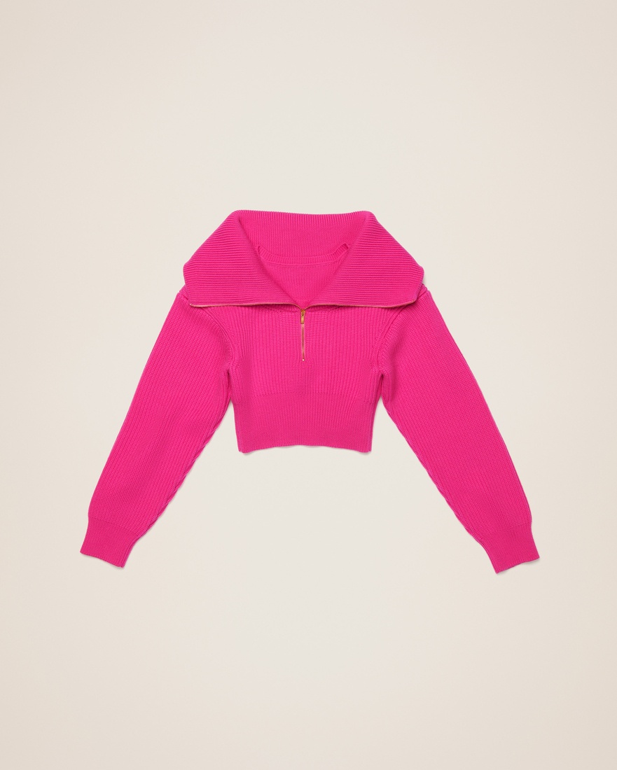LE PAPIER Double collar sweater - Cropped fit with boxy shoulders - Ribbed knit - Zipped open collar - Interior round neck - Contrast cuffs and hem 100% Merino Wool Made in Portugal Ref.213KN501-2086-430