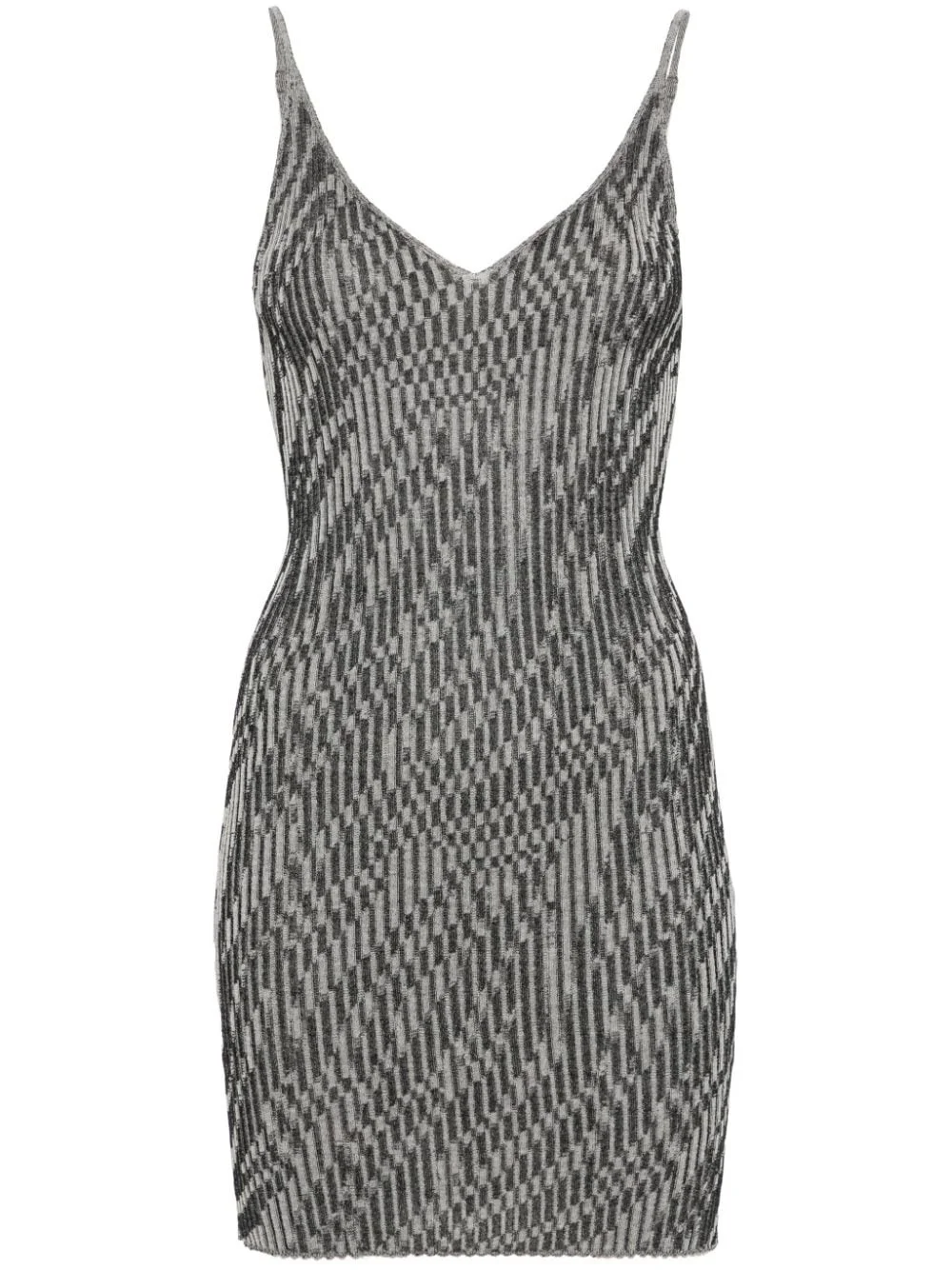 La Mini Robe dress Highlights - Black/grey - Cotton blend - Ribbed knit - Adjustable spaghetti straps - Sleeveless - V-neck - Thigh-length - Straight hem - Abstract pattern print Made in Italy Composition Cotton 90%, Polyamide 10% SIZE & FIT Model measurements Height 5 ft 9 in(1.76 m) Bust/Chest 31.88 in(81 cm) Hips 35.43 in(90 cm) Waist 24.8 in(63 cm) FittingInformation Designed for a close fit throughout The adjustable shoulder straps allow for a preferred fit when worn Made with a lightweight knit, this piece offers some stretch This piece fits true to size – take your usual size