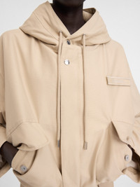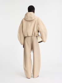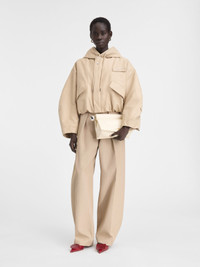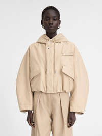 Les Classiques Cropped parka - Cropped, round fit - Water-repellent cotton canvas - Wadded interior - Drawstring hood with circle and square tips - Velcro logo patch - Rounded sleeves with two back pleats - Flap pockets with snap closure - Elasticated drawstring hem - Fully lined The model is 178 cm and wears a size 34 100% Polyamide / Lining: 100% Polyamide Made in Tunisia Ref. 241CO058-1517-150