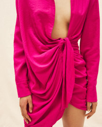 LE PAPIER Sash dress - Relaxed fit - Textured blended viscose - Pointed collar - Plunging, draped neckline - Hidden button under the sewn knot - Square cuffs with mother-of-pearl buttons 88% Viscose - 12% Polyamide/Nylon Made in Portugal Ref.213DR009-1020-430