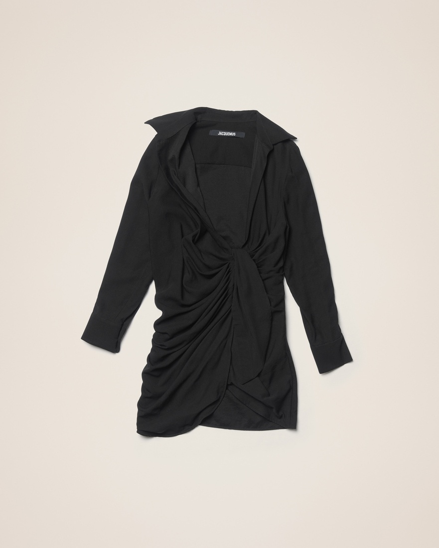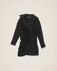 LE PAPIER Sash dress - Relaxed fit - Textured blended viscose - Pointed collar - Plunging, draped neckline - Hidden button under the sewn knot - Square cuffs with mother-of-pearl buttons 88% Viscose - 12% Polyamide/Nylon Made in Portugal Ref.213DR009-1020-990