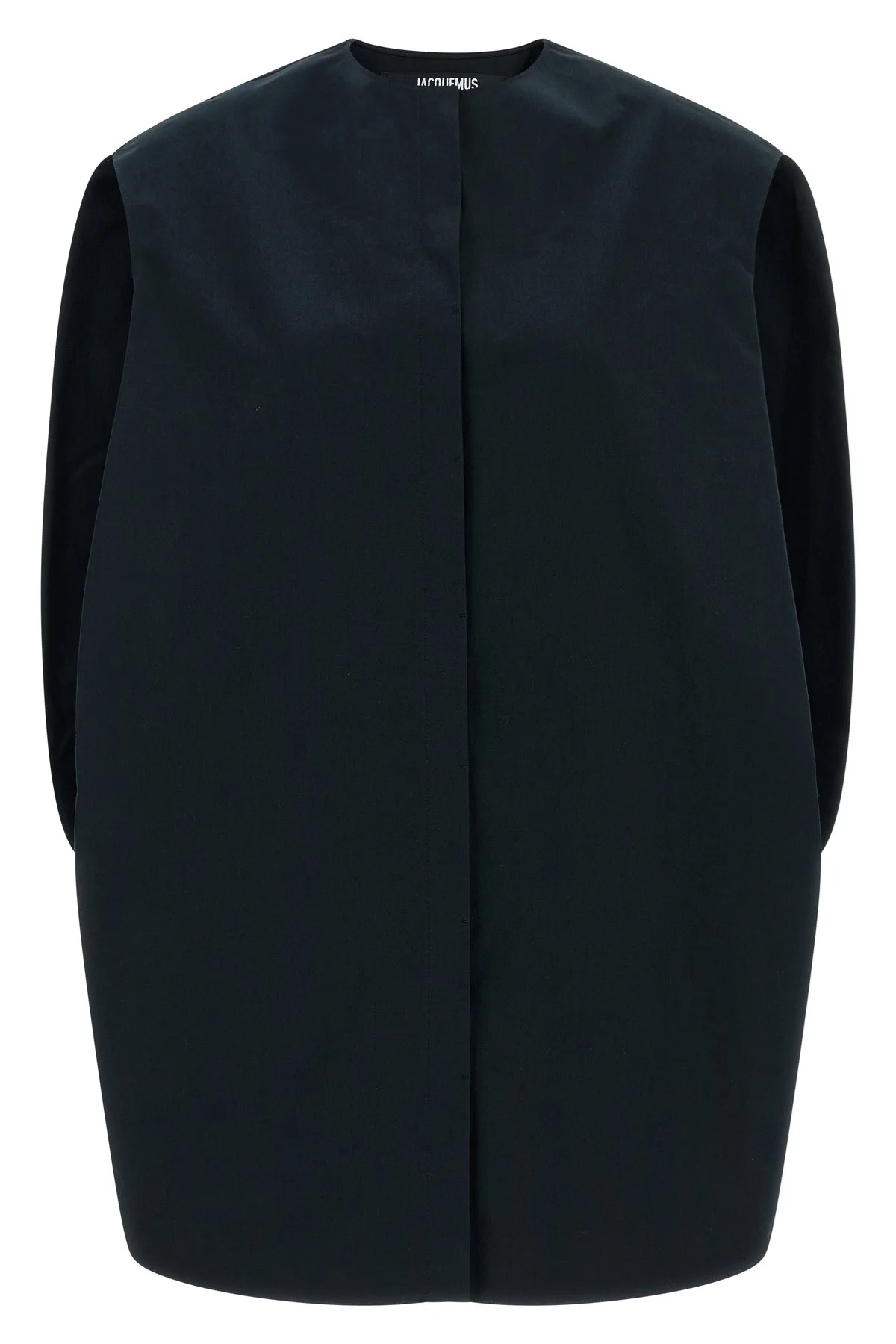 cod. 26EDRW00759AW00648390 'La Robe Berlingot' mini dress in cotton poplin, tunic model with back cape, crew neck, front button closure, sleeveless. Color: Blue Size & Fit: true to size fit - FRENCH size Composition: 100% cotton Made in: France