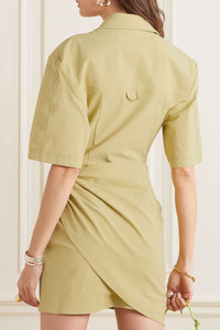EDITORS'NOTES Though pops of bold hues do appear, a minimalist color palette is at the core of Jacquemus' collections. Made from stretch-twill, this mini shirt dress is artfully draped and has a round cutout at one hip. Style yours with the designer's signature bags and heels. SIZE & FIT - Fits true to size, take your normal size - Designed for a slim fit - Mid-weight, stretchy fabric - Model is 180cm/ 5’11” and is wearing a FR 36 DETAILS & CARE - Beige stretch-twill - Button fastenings along front - 55% polyamide, 36% cotton, 9% elastane - Dry clean - Designer color: Light Khaki