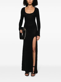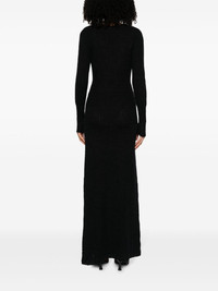 La Robe Dao knitted dress The La Robe Dao dress from Jacquemus embodies the label's signature louche aesthetic. It's crafted from a blend of alpaca and mohair to a sleek, floor-length silhouette with a thigh-high split. Highlights - Black - Alpaca wool-mohair blend - Ribbed knit - Scoop neck - Long sleeves - Side slit - Maxi Imported Composition Lining: Mohair 34% Alpaca 34%, Polyamide 32% SIZE & FIT Model measurements Height 5 ft 10 in(1.78 m) Bust/Chest 33.07 in(84 cm) Hips 36.61 in(93 cm) Waist 24.8 in(63 cm) FittingInformation Designed for a close fit throughout Made with a midweight knit, this piece offers some stretch This piece fits true to size – take your usual size Washing instructions Hand Wash