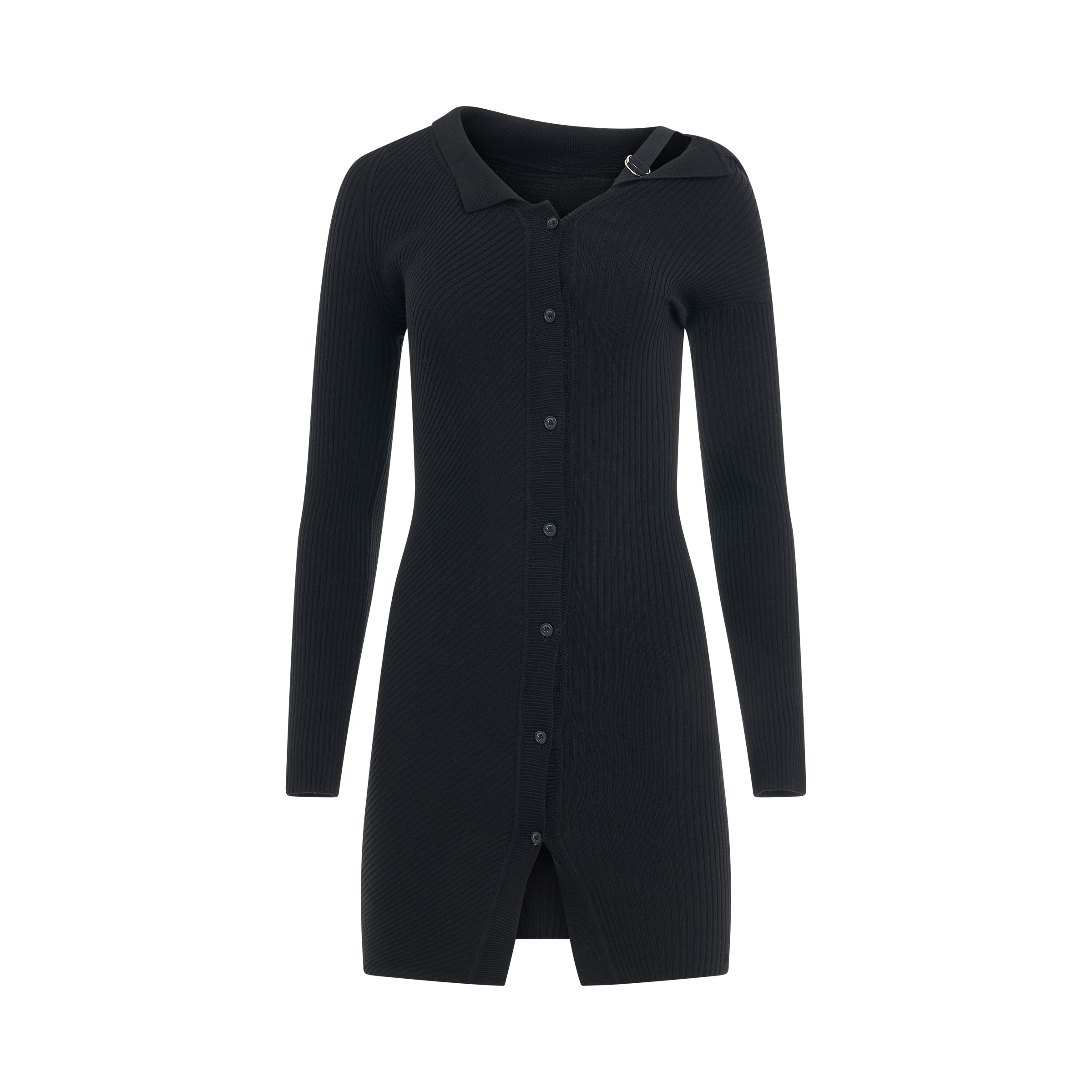 Experience true elegance with the Colin Buckle Strap Knit Dress in Black. This timeless design combines a soft, lightweight knit with a tactile strap buckle detail, perfect for a night out on the town or a special occasion. - Composition: 82% Wool, 17% Polyamide, 1% Elastane - Wool blend - Asymmetric design - Ribbed knit - Single shoulder strap - Long sleeves - Front button fastening - Long sleeves - Straight hem SKU: 233KN3222323 990