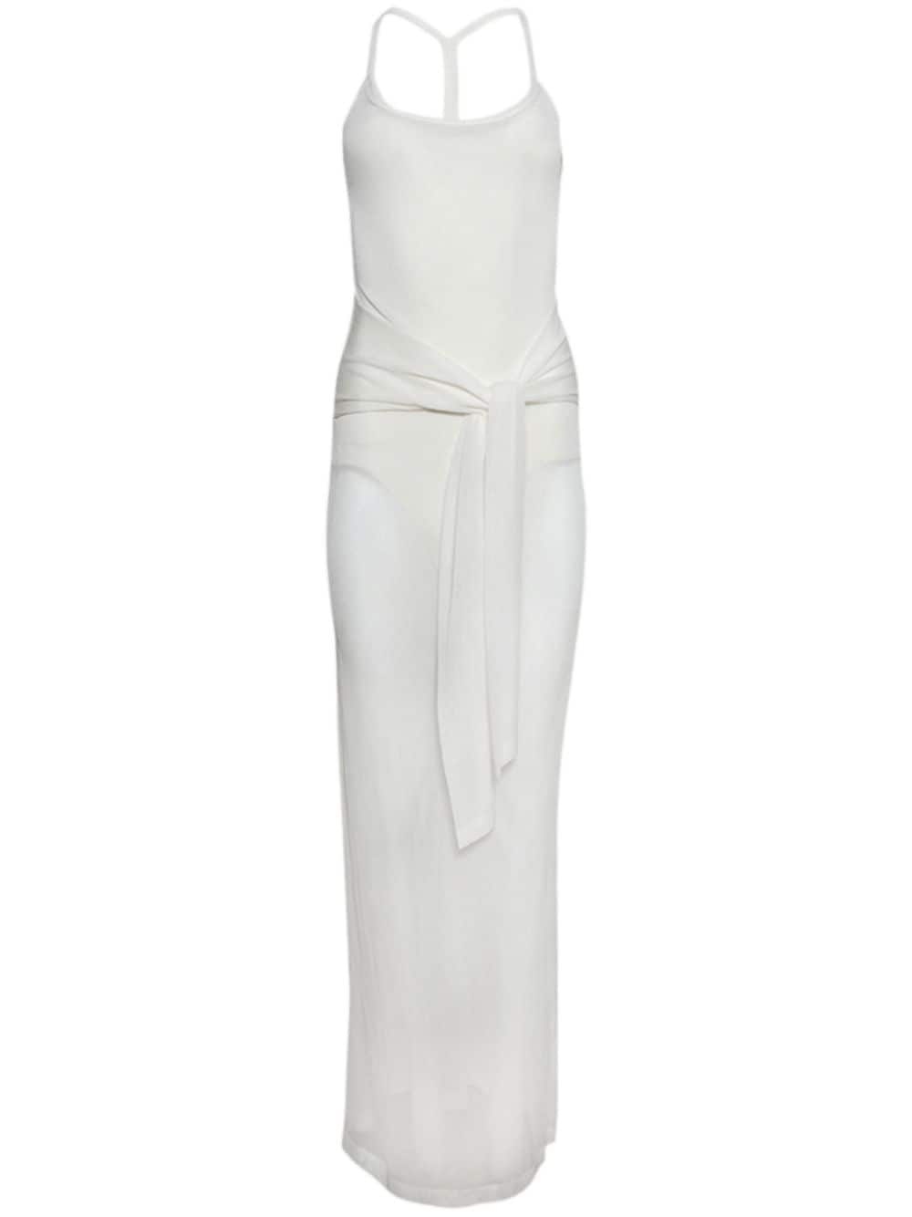 Nodo dress Highlights - Off-white - Stretch-design - Semi-sheer construction - Slip-on style - Halterneck - Thin straps - Draped detailing - Belted waist - Racerback - Logo patch to the rear - Partial lining Imported Composition Viscose 79%, Polyamide 19%, Spandex/Elastane 2%