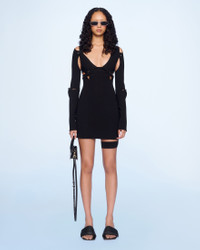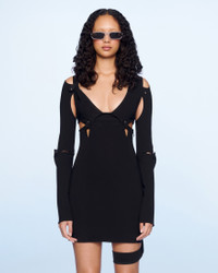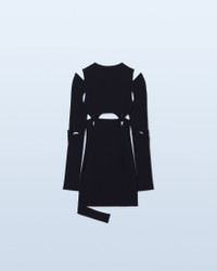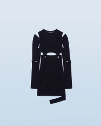 LE SPLASH Snap puzzle dress - Fitted, mini shape - Stretch jersey - Layered construction with multiple pieces joined by snap buttons - Long sleeves with slit elbows - Leg harness The model is 176 cm and wears a size 34 78% Viscose - 16% Polyamide/Nylon - 6% Elastane Made in Portugal Ref.221DR022-1036-990