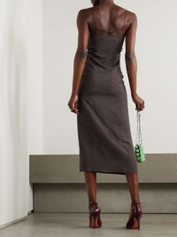 Jacquemus’ lingerie-inspired ‘Notte’ midi dress channels ‘90s minimalism. Made from crepe, it has pretty scalloped trims and a logo plaque at the back. Wear yours with point-toe pumps. Size & Fit - Fits true to size, however those who are between sizes should take the larger size - Those with a large bust may wish to take the next size up - Designed for a slim fit - Lightweight, non-stretchy fabric - Model is 177cm/ 5'10" and is wearing a FR 36 Model measurements: - Bust: 79cm/ 31" - Waist: 61cm/ 24" - Hip: 89cm/ 35" Details & Care - Brown croc-effect crepe - Concealed hook and zip fastening at side - 100% viscose - Dry clean