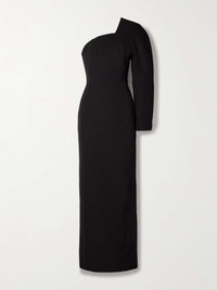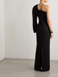 EDITORS'NOTES Jacquemus' 'Pablo' gown is defined by its rounded padded shoulder- a signature detail inspired by Alberto Giacometti's famous 'Femme Cuillère' sculpture. Debuted on the Spring '24 runway, it's woven with plenty of silk and has a curved neckline supported by boning. The deep back vent ensures an easy stride. SIZE & FIT - Fits large to size, take one size smaller than normal - Those with a curvy figure may wish to take their normal size - Designed for a slim fit - Internal bodice for support - Mid-weight, non-stretchy fabric - Model is 177cm/ 5'10", normally wears a FR 36 and is wearing a FR 34 DETAILS & CARE - Black viscose and silk-blend - Concealed hook and zip fastening at side - 58% viscose, 42% silk; trim: 69% polyamide, 31% elastane; lining: 48% cotton, 47% acetate, 5% elastane - Dry clean Large to size. See Size & Fit notes.