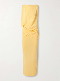 EDITORS'NOTES Jacquemus makes the art of dressing elegantly so easy. This ‘Peplo’ maxi dress is cut from smooth stretch-jersey and has a draped top with alluring cutouts along each side and a fitted skirt with a generous split. SIZE & FIT - Fits true to size, take your normal size - Designed for a slightly loose fit - Partially elasticated at the waist for a flexible fit - Lightweight, slightly stretchy fabric - Model is 177cm/ 5'10" and is wearing a size Small DETAILS & CARE - Yellow stretch-jersey - Slips on - 71% viscose, 21% polyester, 8% elastane - Hand wash